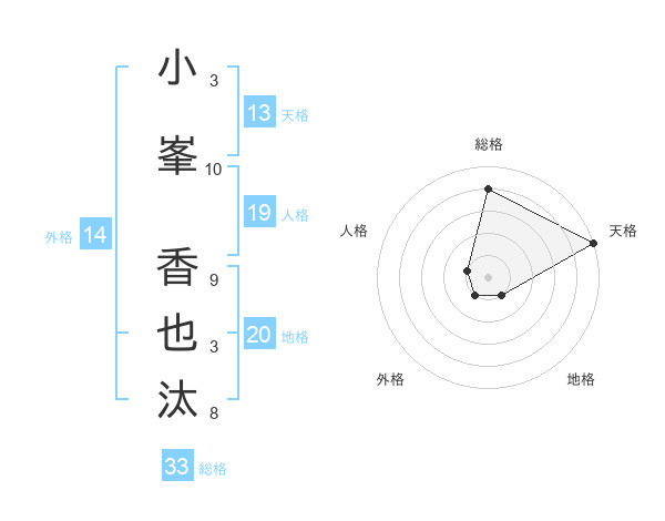 小峯 香也汰さんを姓名の画数から五運を鑑定