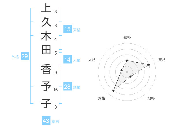 上久木田 香予子さんを姓名の画数から五運を鑑定