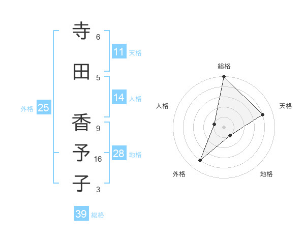 寺田 香予子さんを姓名の画数から五運を鑑定