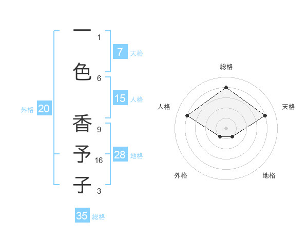 一色 香予子さんの総格は35画の4点!