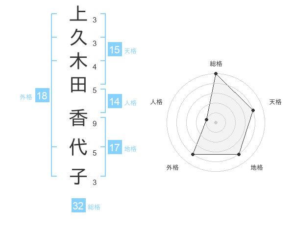 上久木田 香代子さんを姓名の画数から五運を鑑定