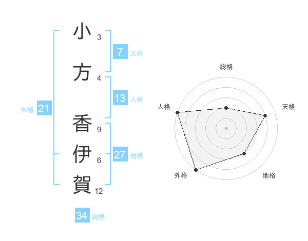 小方 香伊賀さんを姓名の画数から五運を鑑定