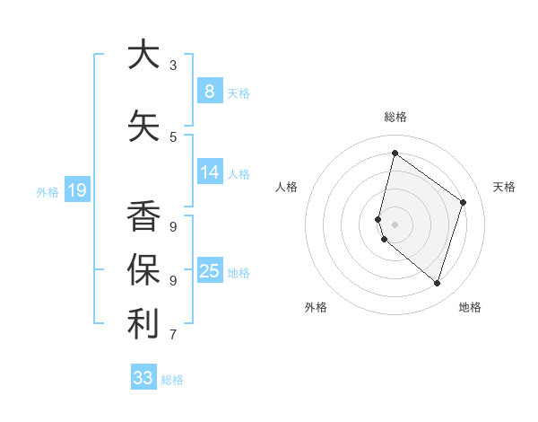 大矢 香保利さんを姓名の画数から五運を鑑定