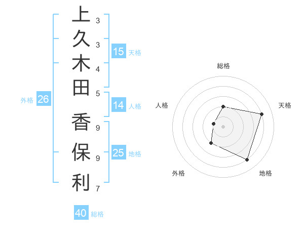 上久木田 香保利さんの総格は40画の2点