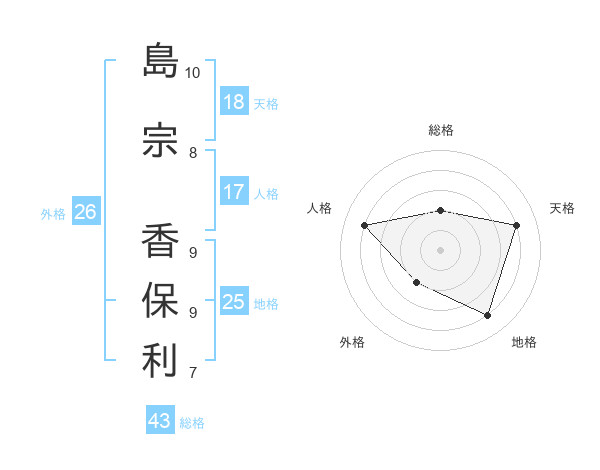 島宗 香保利さんを姓名の画数から五運を鑑定
