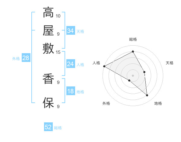 高屋敷 香保さんを姓名の画数から五運を鑑定