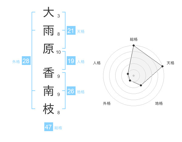 大雨原 香南枝さんを姓名の画数から五運を鑑定