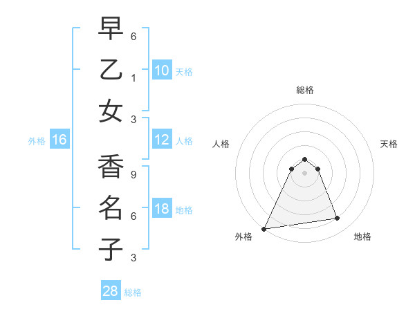 早乙女 香名子さんの総格は28画の1点!