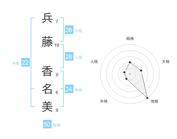 兵藤 香名美さんを姓名の画数から五運を鑑定