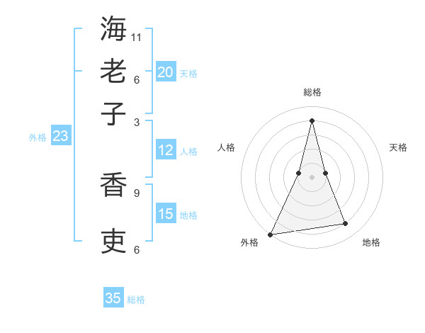 海老子 香吏さんを姓名の画数から五運を鑑定