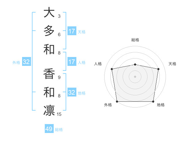大多和 香和凛さんの天格は17画の4点!