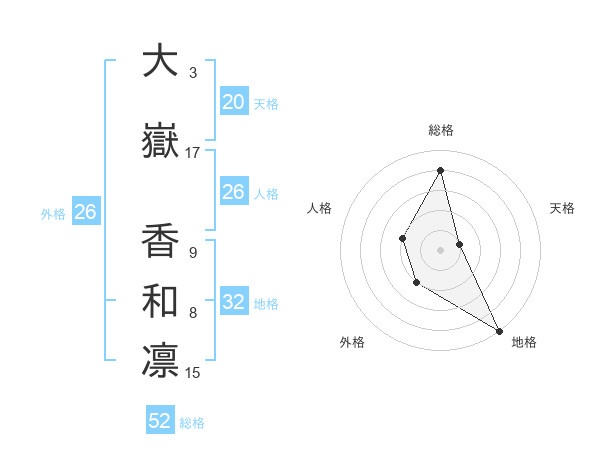 大嶽 香和凛さんを姓名の画数から五運を鑑定
