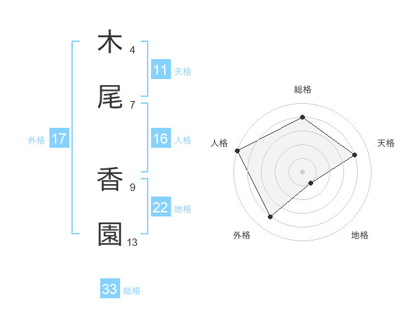 木尾 香園さんの総格は33画の4点!