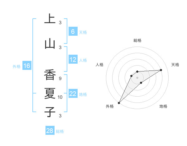上山 香夏子さんを姓名の画数から五運を鑑定