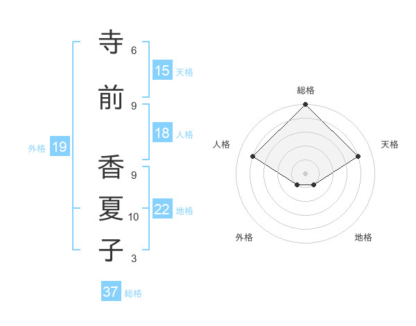 寺前 香夏子さんを姓名の画数から五運を鑑定
