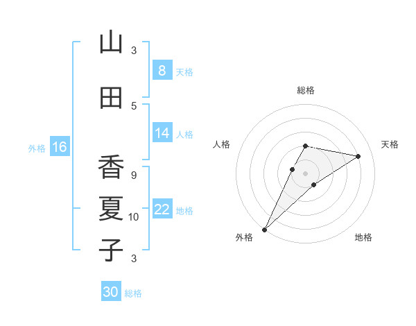 山田 香夏子さんを姓名の画数から五運を鑑定