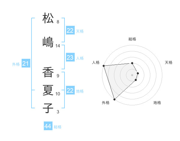 松嶋 香夏子さんを姓名の画数から五運を鑑定
