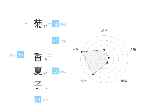 菊 香夏子さんの天格は12画の1点!