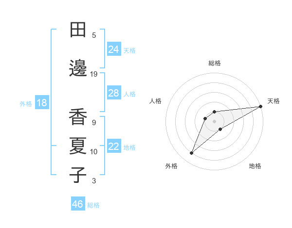 田邊 香夏子さんを姓名の画数から五運を鑑定