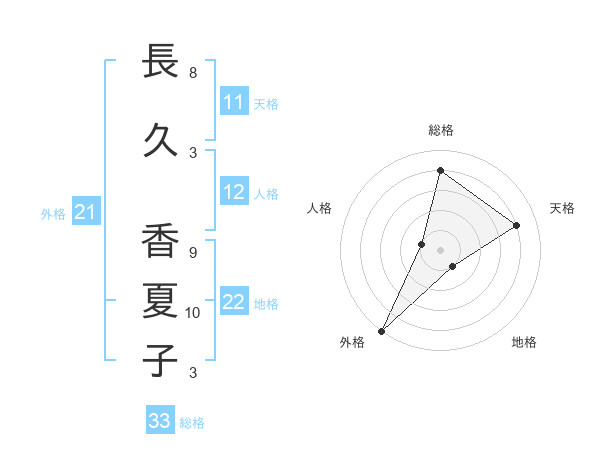 長久 香夏子さんを姓名の画数から五運を鑑定