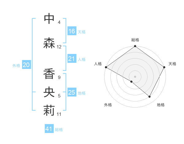 中森 香央莉さんを姓名の画数から五運を鑑定