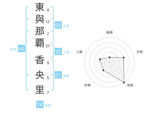 東與那覇 香央里さんを姓名の画数から五運を鑑定