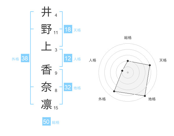 井野上 香奈凛さんの天格は18画の4点!