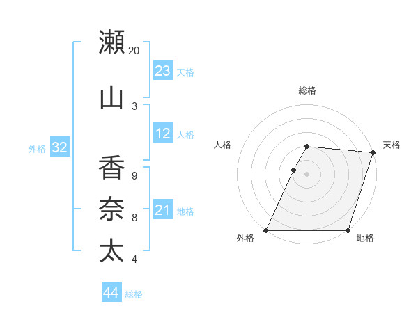 瀬山 香奈太さんを姓名の画数から五運を鑑定