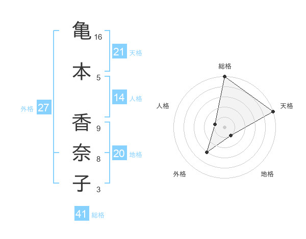 亀本 香奈子さんを姓名の画数から五運を鑑定