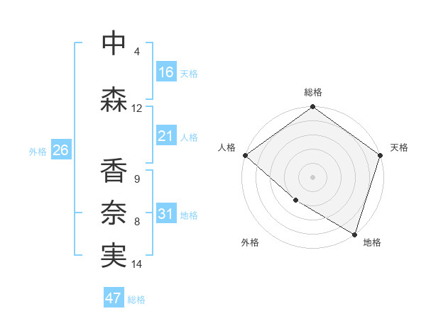 中森 香奈実さんを姓名の画数から五運を鑑定