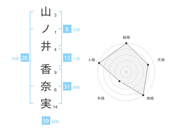 山ノ井 香奈実さんの総格は39画の5点