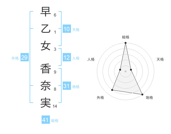 早乙女 香奈実さんを姓名の画数から五運を鑑定