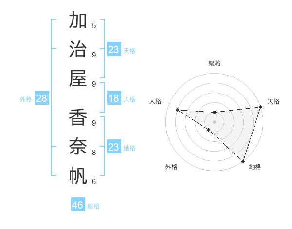 加治屋 香奈帆さんを姓名の画数から五運を鑑定