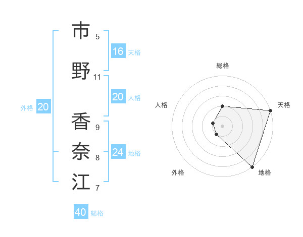 市野 香奈江さんを姓名の画数から五運を鑑定