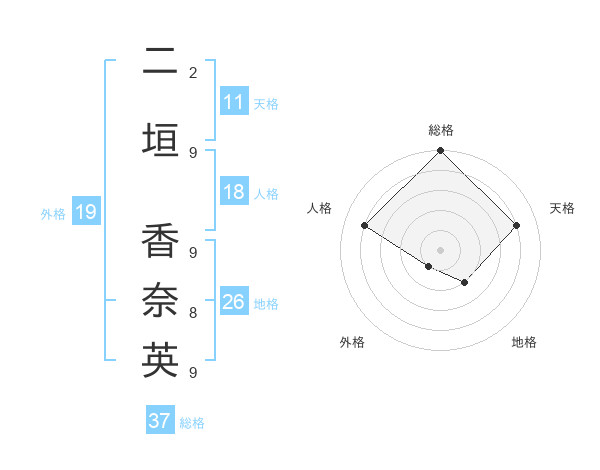 二垣 香奈英さんを姓名の画数から五運を鑑定