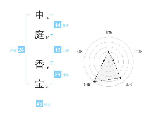 中庭 香宝さんの総格は43画の2点!