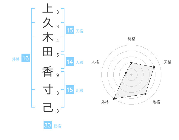 上久木田 香寸己さんを姓名の画数から五運を鑑定