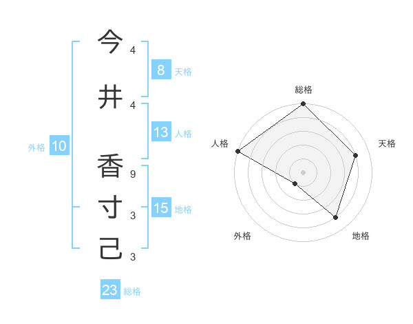 今井 香寸己さんを姓名の画数から五運を鑑定