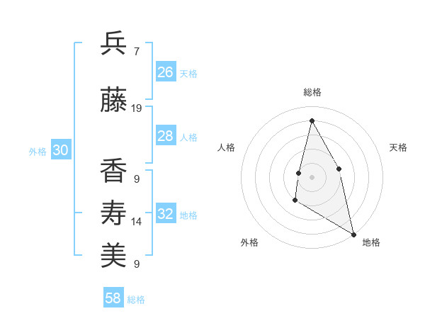 兵藤 香寿美さんを姓名の画数から五運を鑑定