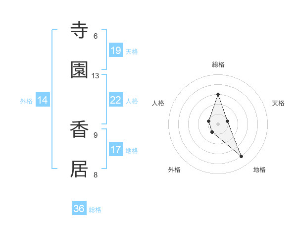 寺園 香居さんの天格は19画の1点!