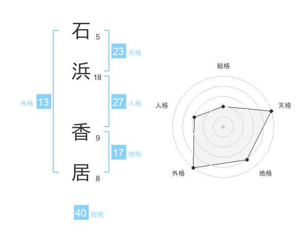 石浜 香居さんの外格は13画の5点!