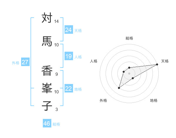 対馬 香峯子さんを姓名の画数から五運を鑑定