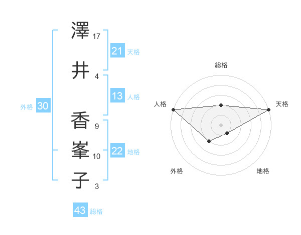 澤井 香峯子さんを姓名の画数から五運を鑑定