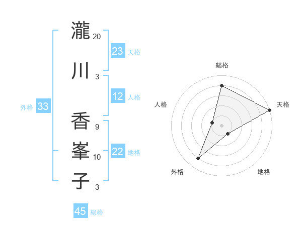 瀧川 香峯子さんを姓名の画数から五運を鑑定