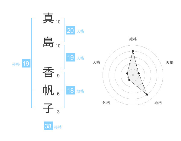 真島 香帆子さんの総格は38画の4点