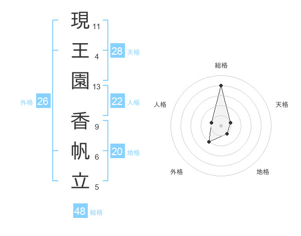 現王園 香帆立さんを姓名の画数から五運を鑑定