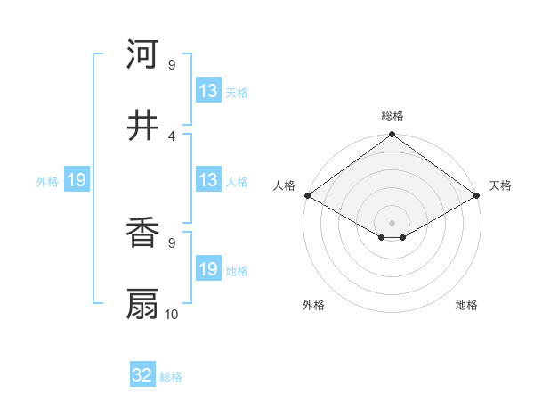 河井 香扇さんの総格は32画の5点!