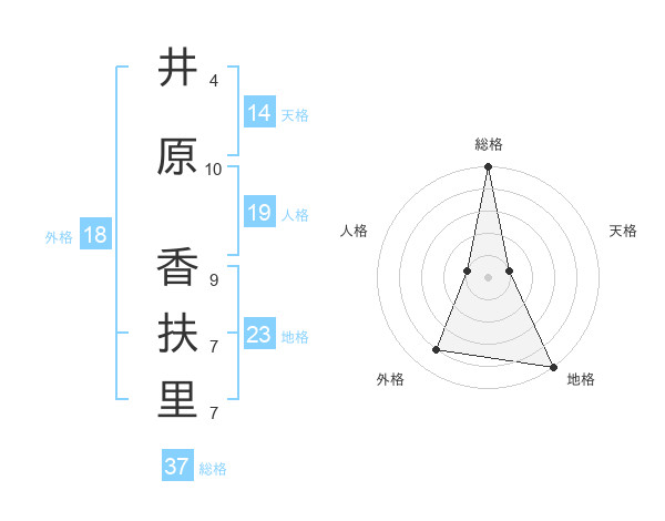 井原 香扶里さんを姓名の画数から五運を鑑定