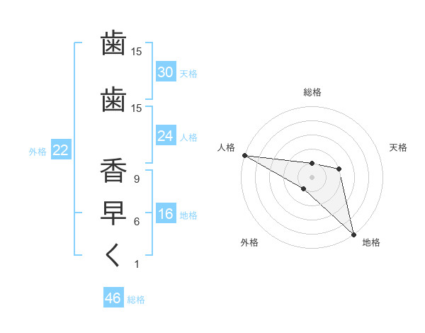 歯歯 香早くさんの外格は22画の1点!