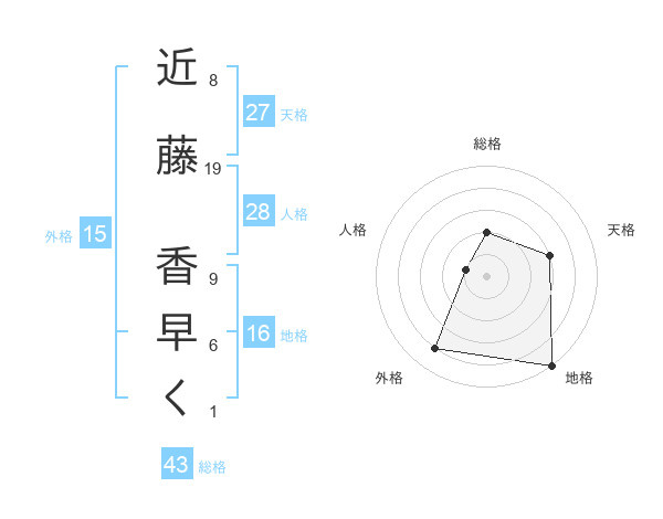 近藤 香早くさんを姓名の画数から五運を鑑定